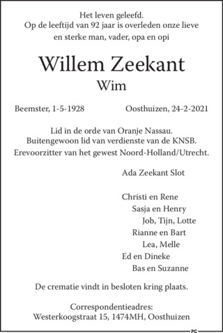 Vandaag bereikte ons het droevige bericht dat onze (oud-) en erevoorzitter van het Gewest op 92 jarige leeftijd is overleden.